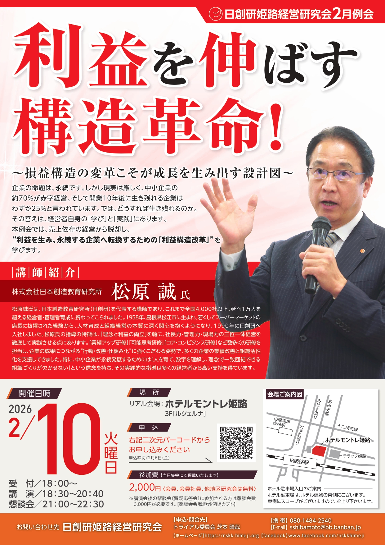 日創研姫路経営研究会は、会員数80名(令和7年1月現在)の