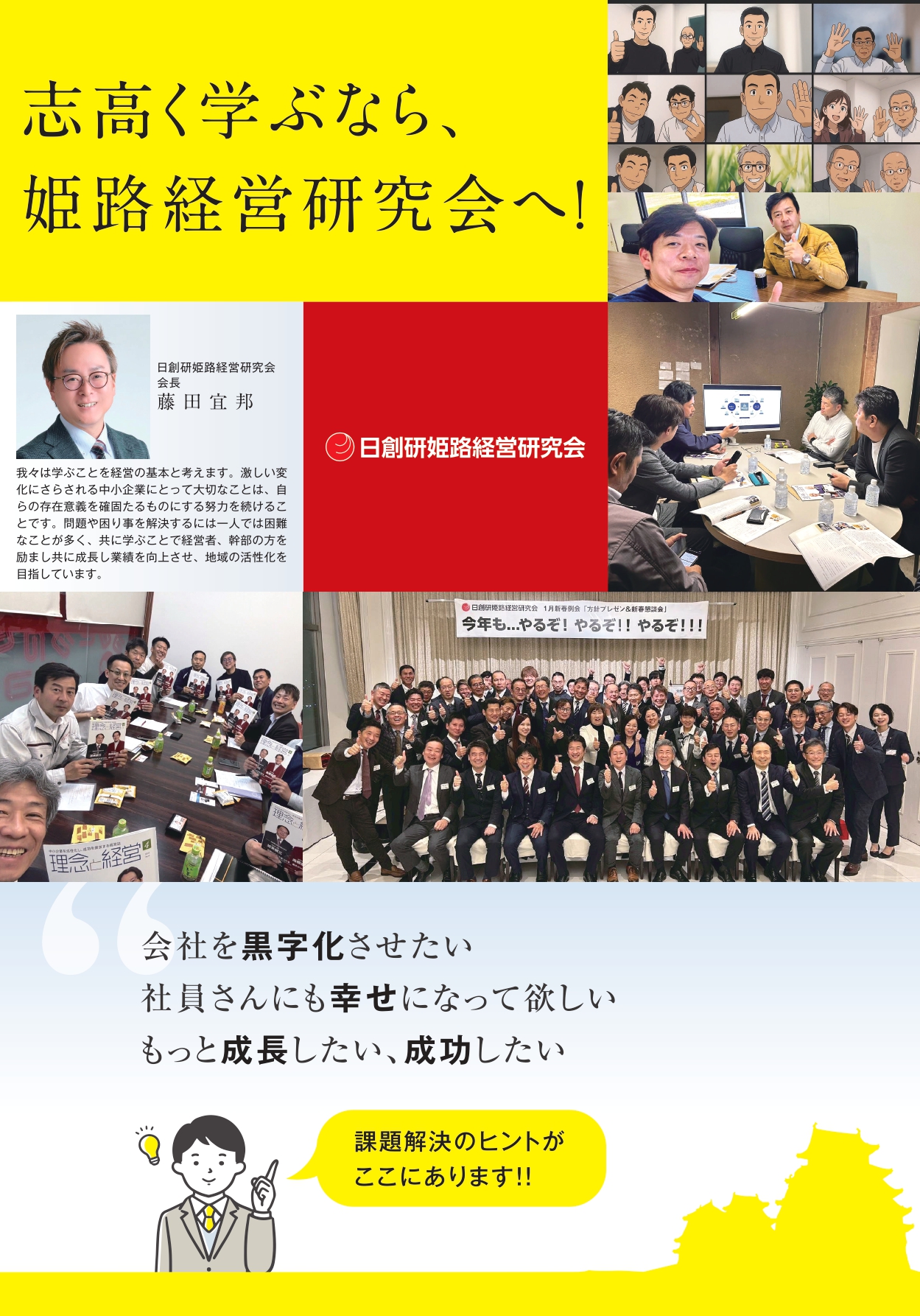 そんな悩みを本音で語り合え、共有し、ご自身や自社が一歩踏み出すことができるのが姫路経営研究会です。